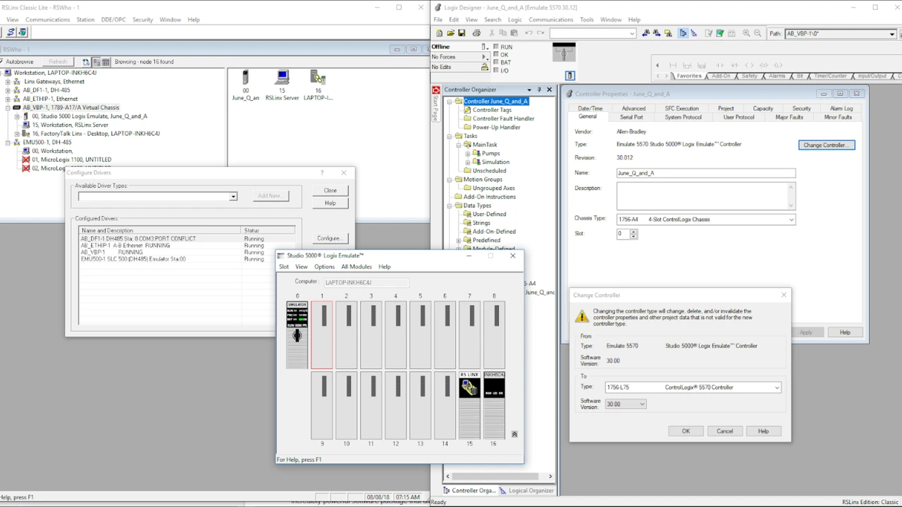 Ao longo deste curso, você terá a oportunidade de praticar as habilidades aprendidas por meio de uma variedade de exercícios práticos. Este curso utilizará uma estação de trabalho simulada, usando uma combinação dos softwares Studio 5000 Logix Emulate, Logix Echo e FactoryTalk View ME para fornecer o simulador de I/O, e/ou os softwares FactoryTalk Linx ou RSLinx Classic para fornecer as funções de comunicação.